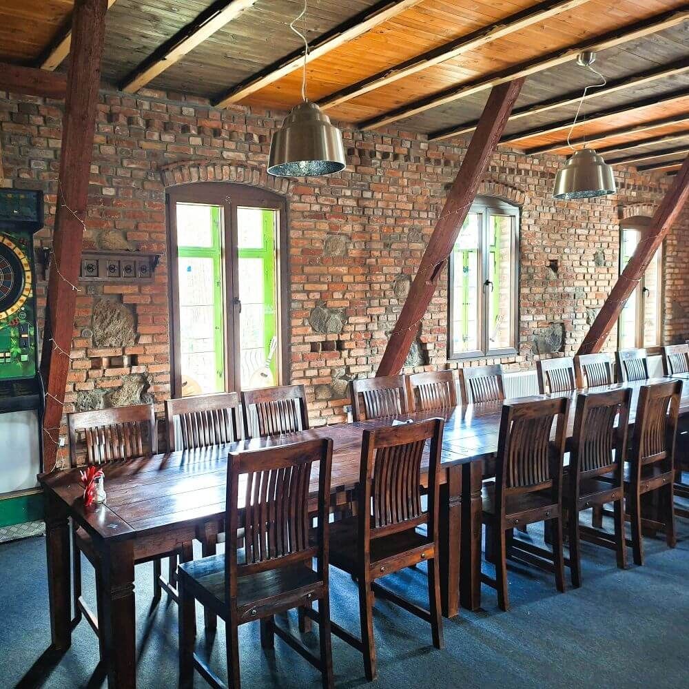 Wystroj wnetrza dla 40 - 80 osob w stylu Stara cegla i drzewo, wyposazona w w pelni wyposazony bar, sprzet naglasniajacy , bilard, p[ilkazyki i darst ( wmire potrzeby )